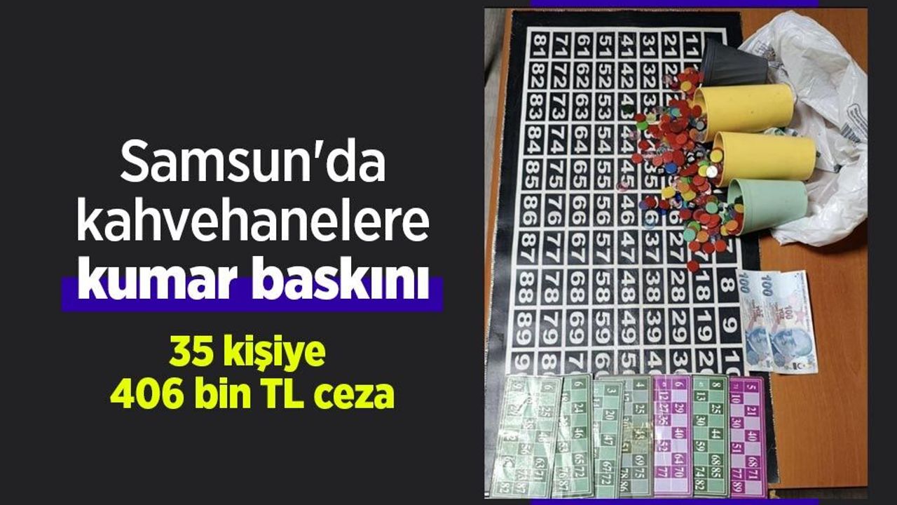 Samsun İl Emniyet Müdürlüğü ekiplerince kumar oynanmasının önlenmesine yönelik çalışmalar kapsamında İlkadım ve Canik ilçelerinde faaliyet gösteren kahvehanelerde denetim gerçekleştirildi. İlkadım ilçesinde yapılan kontrollerde bir iş yerinde 31 şahsın tombala oynadıkları tespit edildi. Kumar oynadığı belirlenen 31 şahsa toplam 359 bin 724 TL idari para cezası uygulandı. İş yeri sorumlusu S.Ö. (36) hakkında ise "kumar oynanması için yer ve imkân sağlamak" suçundan adli işlem başlatıldı.