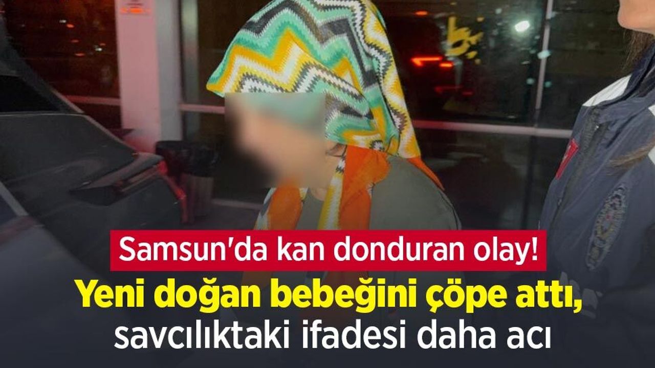 Tedavisinin ardından taburcu edilen kadın gözaltına alınırken, ilk ifadesinde eşinden boşandığını, sevgilisinden hamile kaldığını, bebeğini evde doğurduğunu, bir süre sonra öldüğünü fark edip poşete koyarak çöpe attığını söyledi. Emniyetteki işlemlerinin ardından adliyeye sevk edilen kadın, savcılıktaki ifadesinde ise bebeğin canlı doğduğunu belirtti. Nöbetçi mahkemeye çıkarılan şüpheli, 20 Ekim 2025 tarihinde tutuklanarak Samsun T Tipi Kapalı Cezaevi'ne gönderildi.
