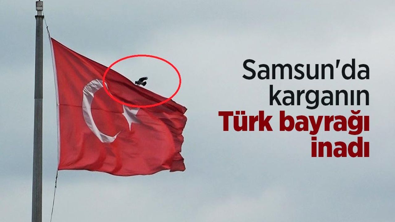 Samsun Cumhuriyet Meydanı’ndaki göndere asılı Türk bayrağı sert rüzgarda dalgalanırken, bir karga bayrağın üzerine konmak için dakikalarca mücadele verdi. Rüzgarın etkisiyle defalarca havalanmak zorunda kalan karga, her seferinde yeniden dönerek bayrağa tutunmaya çalıştı.