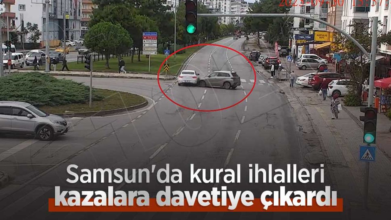 Atakum ilçesi Atatürk Bulvarı'nda meydana gelen kazada ise, ana yol üzerinde kontrolsüz şekilde dönüş yapan bir otomobil ile yeşil ışıkta ilerleyen başka bir otomobil çarpıştı.