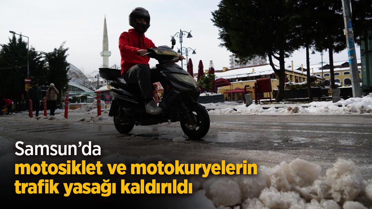 Samsun Valiliği'nde yapılan açıklamada, "Kıymetli Samsunlular; olumsuz hava şartları nedeniyle motosiklet aracı ve motokuryelere uygulanan trafiğe çıkış kısıtlaması, yapılan değerlendirmeler sonucunda; 03 Ocak 2026 Cumartesi (bugün) saat 12.00 itibarıyla sona ermiştir" denildi.