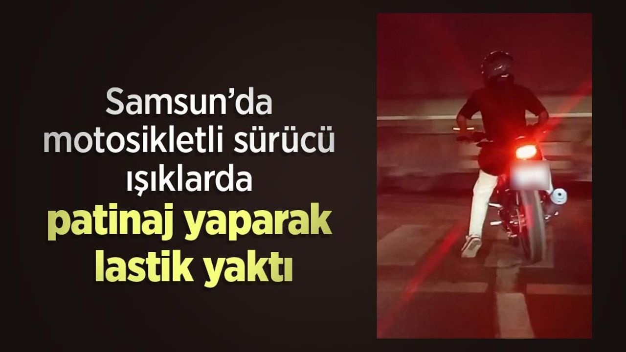 Canik ilçesi Belediyeevleri Kavşağı Atatürk Bulvarı üzerindeki trafik ışıklarında meydana gelen olayda kırmızı ışıkta bekleyen motosiklet sürücüsü, yeşil ışığın yanmasıyla birlikte gazı sonuna kadar açarak patinaj yaptı. Motosikletin arka lastiği kısa sürede dumanlar çıkardı. Sürücü bir süre bu şekilde ilerledi. O anlara tanık olan vatandaşlar, tehlikeli gösteriyi cep telefonuyla kaydetti.