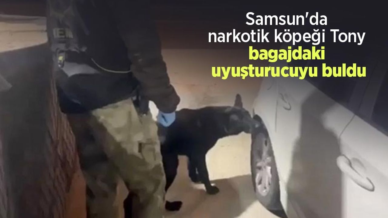 Samsun İl Emniyet Müdürlüğü Narkotik Suçlarla Mücadele Şube Müdürlüğü ekiplerinin yürüttüğü çalışma kapsamında durdurulan araçta yapılan kontrollerde, Tony’nin bagaj kısmına tepki vermesi üzerine detaylı arama gerçekleştirildi. Aramada 318 gram fubinaca ve 50,2 gram metamfetamin ele geçirildi.