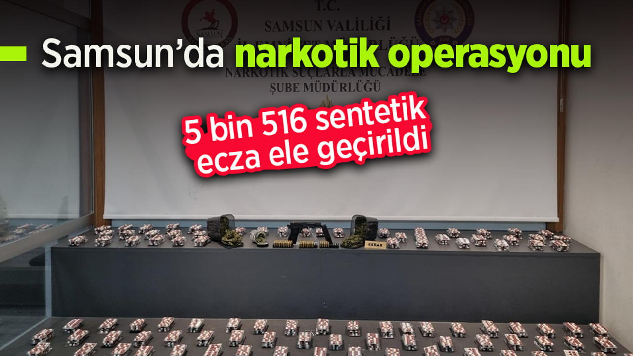 Ekiplerce U.A. (43) isimli şahsın ikametinde yapılan aramada 5 bin 516 adet sentetik ecza, 560 gram esrar, 1 ruhsatsız tabanca ve 113 tabanca fişeği ele geçirildi. Şüpheli gözaltına alınarak hakkında "uyuşturucu madde ticareti" suçundan adli işlem başlatıldı.