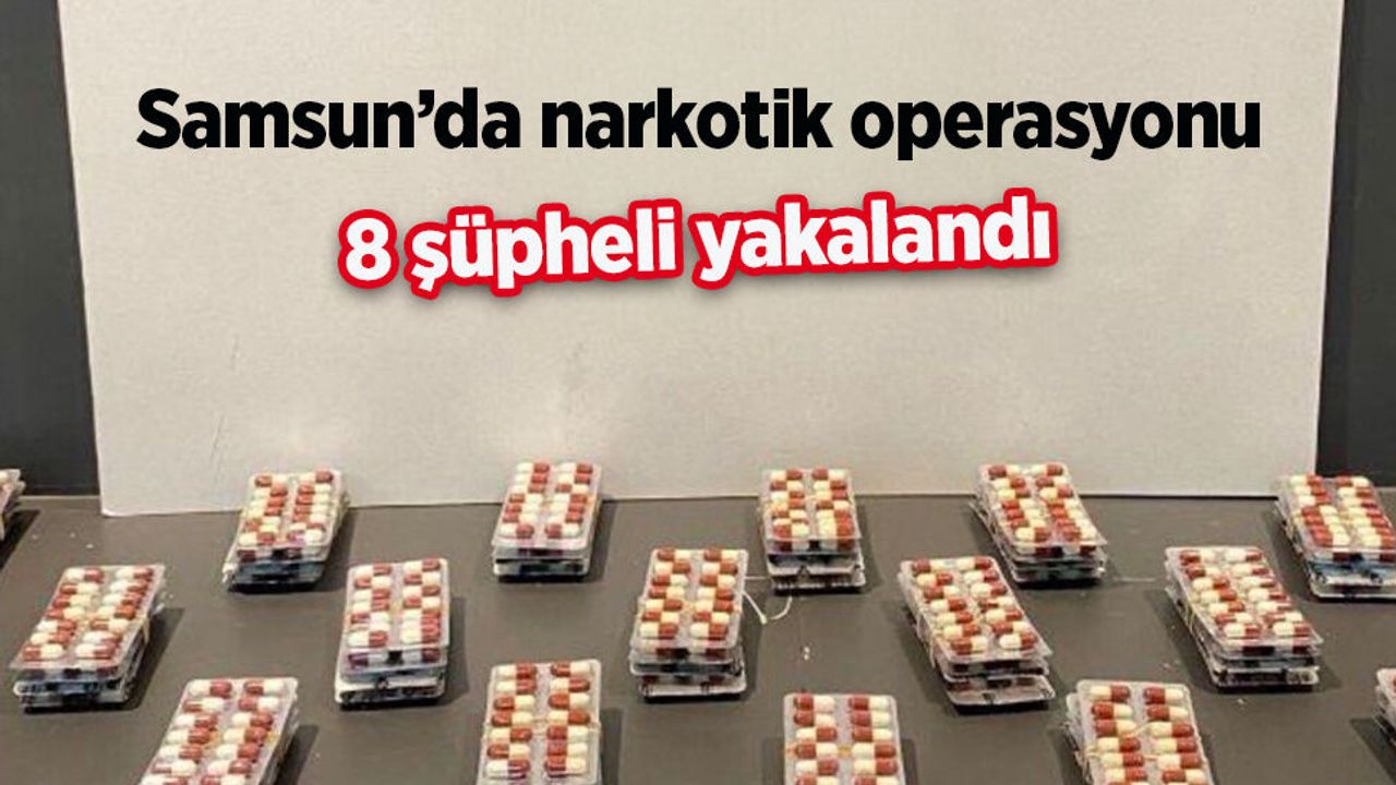 Samsun İl Emniyet Müdürlüğü Narkotik Suçlarla Mücadele Şube Müdürlüğü ekipleri, uyuşturucu madde ticareti ve kullanımının önlenmesine yönelik yürüttükleri çalışmalar kapsamında İlkadım, Atakum ve Canik ilçelerinde belirlenen 8 şahsın üst, araç ve ikametlerinde arama gerçekleştirdi. Yapılan aramalarda, bin 116 adet uyuşturucu hap, 142,5 gram sentetik kannabinoid, 100 ml sentetik kannabinoid elde etmeye yarar aseton, 5,83 gram kokain, 1 adet ruhsatsız tabanca, 1 adet ruhsatsız tüfek, 2 adet hassas terazi ve 3 adet uyuşturucu madde kullanım aparatı ele geçirildi.