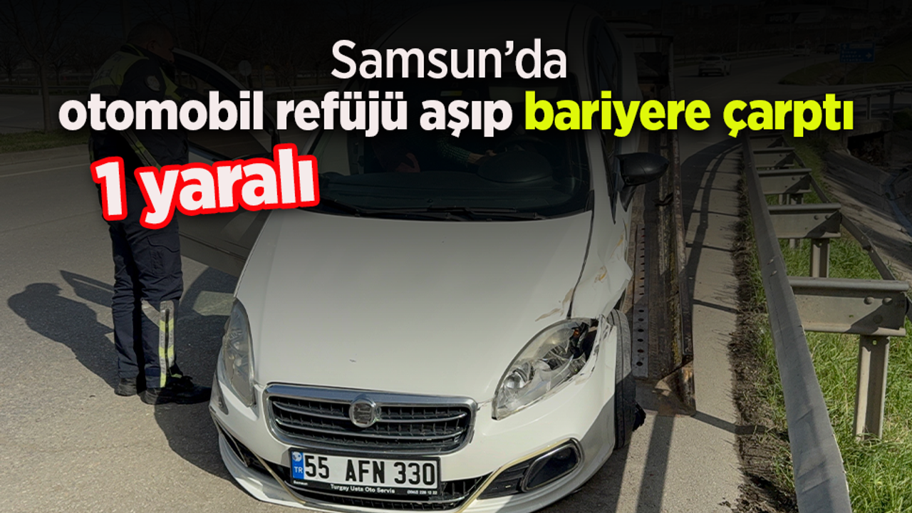 Samsun’da otomobil refüjü aşıp bariyere çarptı: 1 yaralı