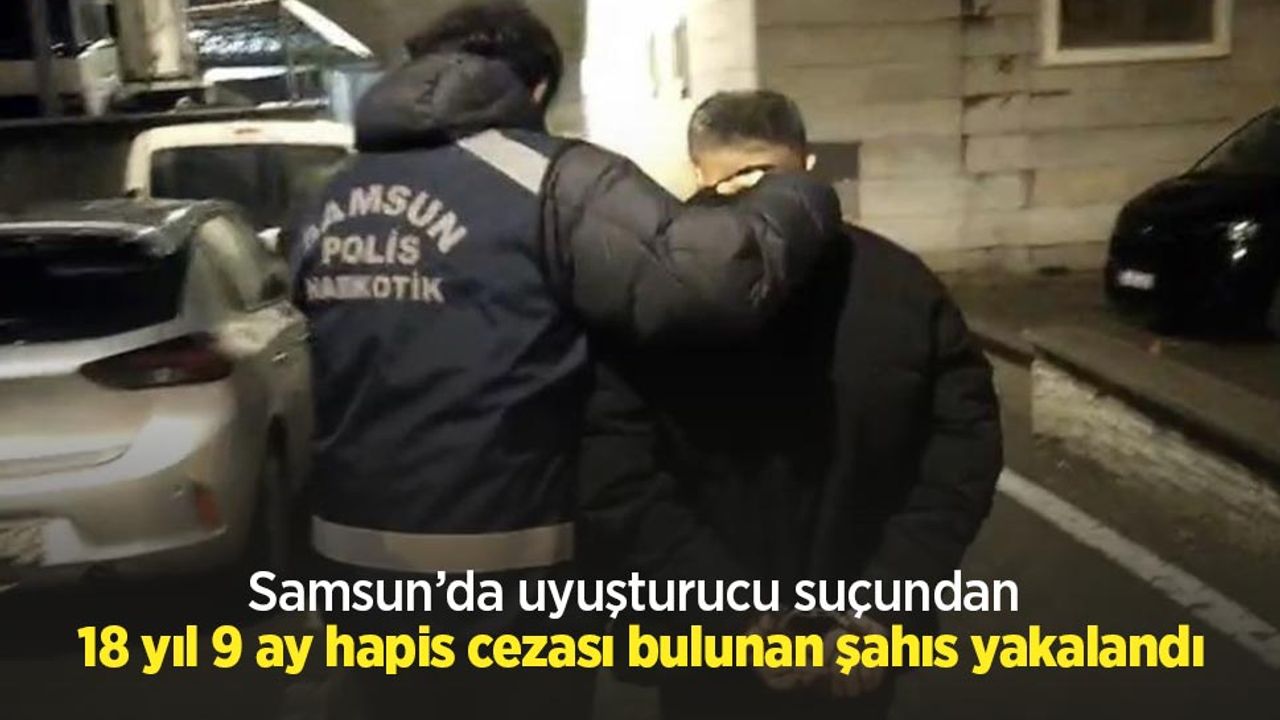 Samsun İl Emniyet Müdürlüğü Narkotik Suçlarla Mücadele Şube Müdürlüğü ekiplerince, uyuşturucu madde ticareti ve kullanımının önlenmesine yönelik aranan şahıslara yönelik operasyon gerçekleştirildi. Yapılan çalışmalar neticesinde, "uyuşturucu madde ticareti yapma veya sağlama" suçundan 18 yıl 9 ay kesinleşmiş hapis cezası bulunan S.H. (41) yakalanarak gözaltına alındı. Emniyetteki işlemlerinin ardından adli makamlara sevk edilen şüpheli, tutuklanarak cezaevine gönderildi.