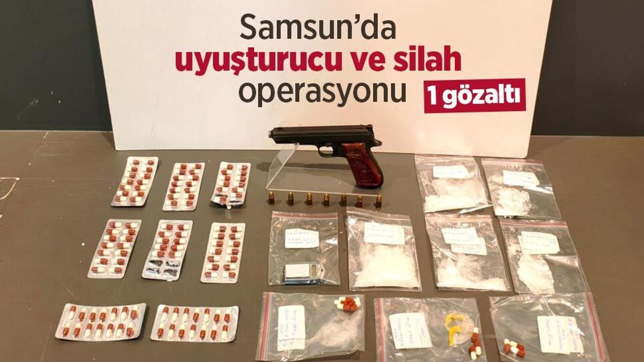 Samsun İl Emniyet Müdürlüğü Narkotik Suçlarla Mücadele Şube Müdürlüğü ekiplerince uyuşturucu madde ticareti ve kullanımının önlenmesine yönelik yürütülen çalışmalarda A.E.M.'nin (34) kaldığı adrese operasyon düzenlendi. İkamette yapılan aramada 40 gram metamfetamin, 121 adet sentetik ecza, 1 adet hassas terazi, 2 adet uyuşturucu kullanma aparatı, 1 adet ruhsatsız tabanca ve 7 adet tabanca fişeği ele geçirildi. Gözaltına alınan şüpheli hakkında adli işlem başlatıldı.