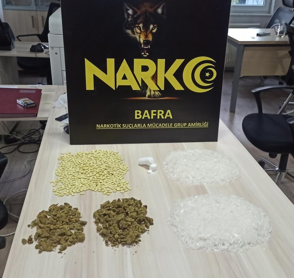 Samsun Narkotik Suçlarla Mücadele Şube Müdürlüğü ve Bafra Narkotik Suçlarla Mücadele Grup Amirliği ekiplerince yapılan çalışmalar sonucunda bir araç takibe alındı. Söz konusu araçta yapılan aramada 2 paket halinde 1 kilogram metamfetamin, 594 adet extacy hap, 155,14 gram skunk ve 39,41 gram kokain ele geçirildi. Olayla ilgili S.A. ve M.G. isimli şahıslar gözaltına alındı.