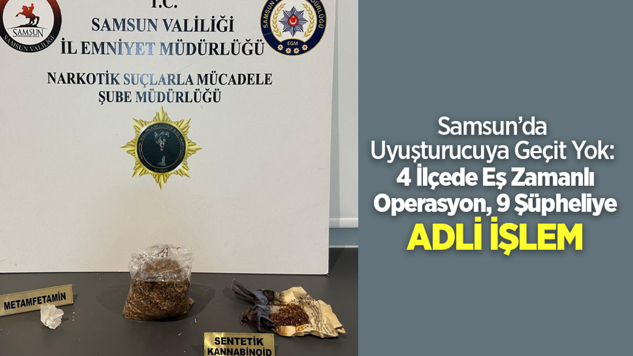 Yürütülen planlı operasyonlar kapsamında İlkadım, Canik, Bafra ve Çarşamba ilçelerinde eş zamanlı olarak gerçekleştirilen denetim ve aramalarda, 9 şahsın üst, araç ve ikametlerinde yapılan aramalarda çok sayıda uyuşturucu madde ve suç unsuru ele geçirildi.