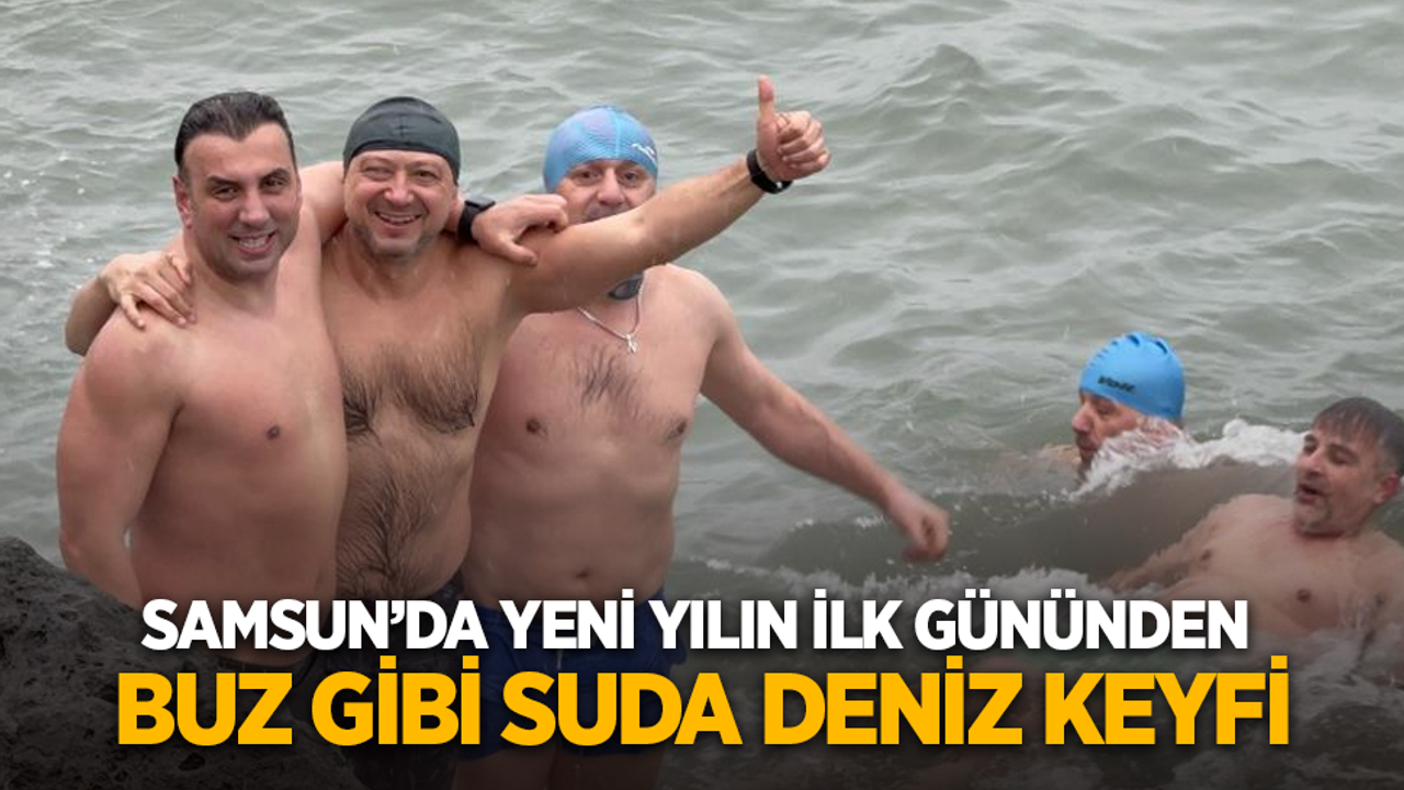 Samsun'da farklı yaş ve meslek gruplarından oluşan yaklaşık 10 kişilik bir arkadaş grubu, yeni yılın ilk gününde kar yağışı altında Karadeniz'in buz gibi sularında yüzerek unutulmaz bir deniz keyfi yaşadı.