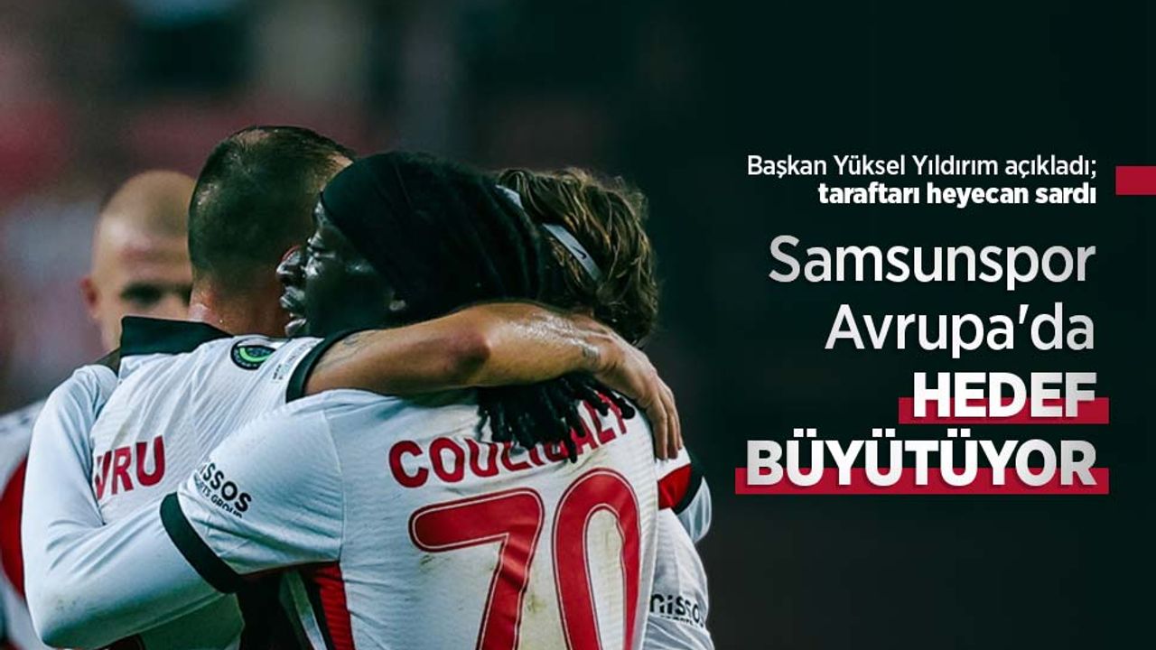Samsunspor Haber - Samsunspor Başkanı Yüksel Yıldırım, Avrupa da hedef büyütüyor. Başkan Yıldırım, "Samsun'un burada hedefi var. Biz bu hedef için kadroyu kurduk. Hem ligde hem Avrupa'da. Avrupa'daki ilk hedefimiz son 24'e, sonra son 16'ya kalmaktı. Belki böyle giderse biz şimdi ilk 8'de bitirmeyi hedefliyoruz. Hedefimizi büyüttük" ifadelerini kullandı. Türk takımlarının Avrupa'daki başarısını değerlendiren Yüksel Yıldırım, şunları söyledi: