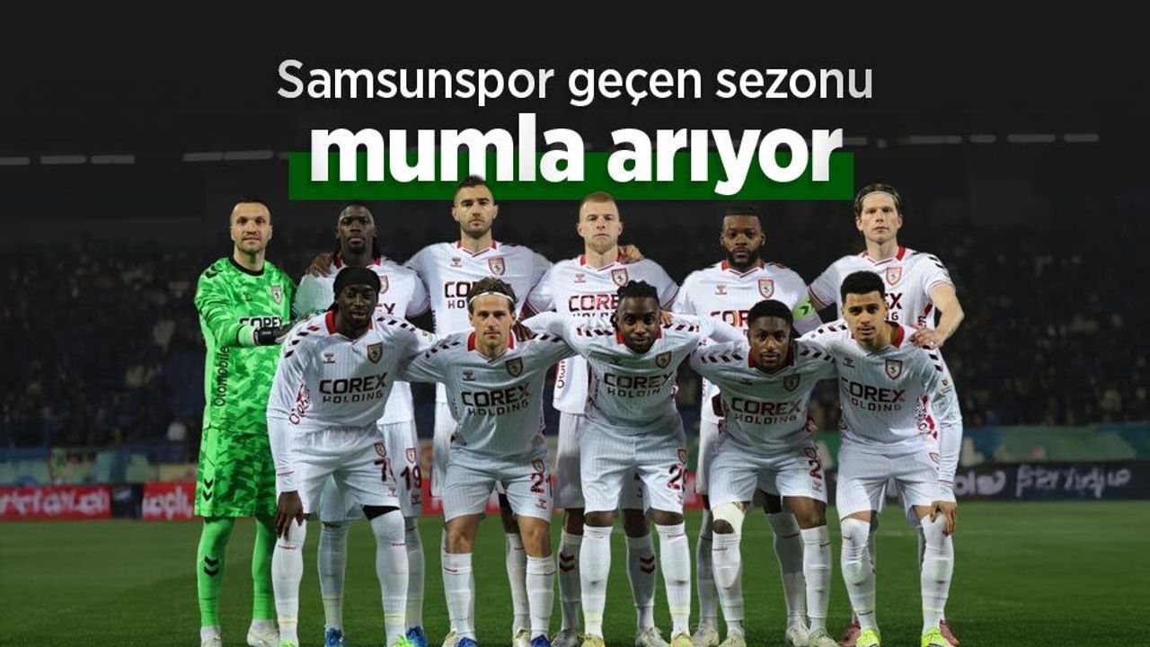 Ligde geride kalan 28 haftada 8 galibiyet, 12 beraberlik ve 8 mağlubiyet alan Samsunspor 32 gol atarken, kalesinde 37 gol gördü. Geçen sezon aynı süreçte ise 15 galibiyet, 6 beraberlik ve 7 mağlubiyetle 51 puan toplayan kırmızı-beyazlılar rakip filelere 44 gol gönderip, 32 gol yemişti.