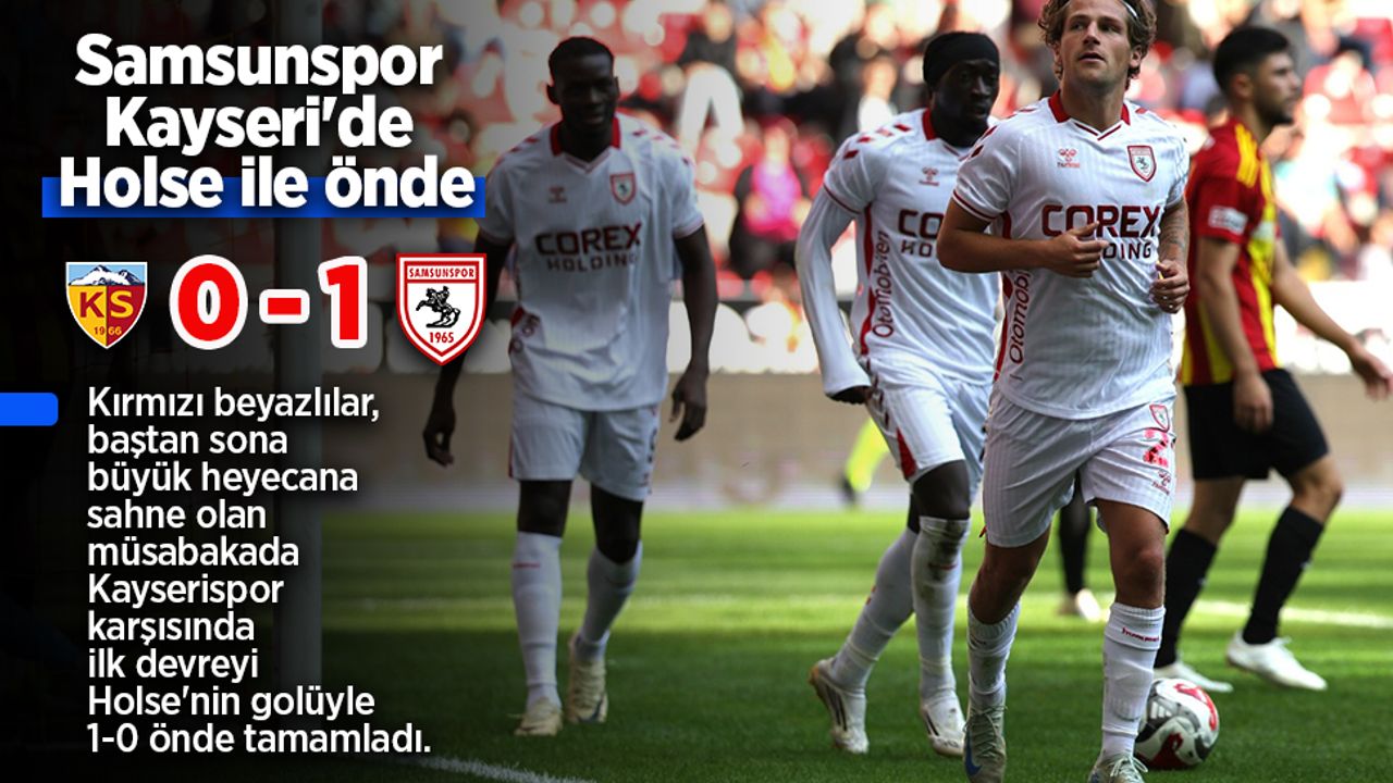 Trendyol Süper Lig'de Samsunspor, milli aradan sonra Kayserispor deplasmanında. Kırmızı beyazlı ekip, mutlak galibiyet hedefiyle çıktığı maçta oyuna durgun başladı. Rakip takım taraftarının desteğiyle ilk bölümlerde oyunu Samsunspor yarı sahasına yıksa da kırmızı beyazlı ekip, ilerleyen sürede oyunda önce dengeyi kurdu daha sonra üstünlüğü ele geçirdi. Özellikle Musaba ile sol kanattan etkili olan Samsunspor, ilk devrenin son dakikasında Holse'nin golüyle soyunma odasına 1-0 önde tamamladı.