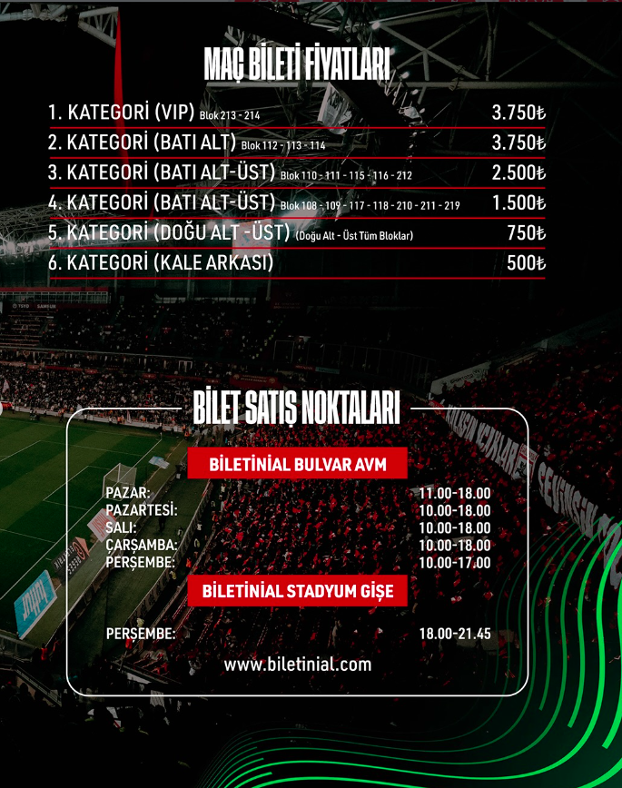 1. Kategori (VIP): 3.750 TL