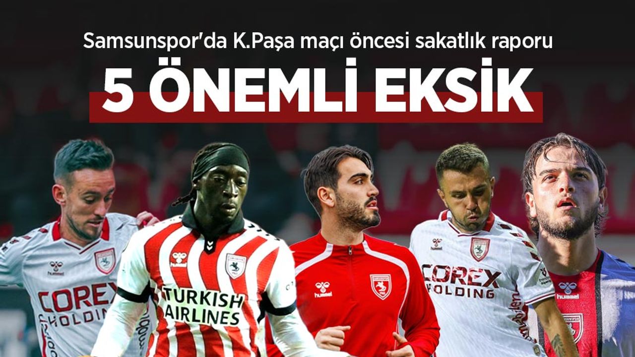 Samsunspor Haber - Trendyol Süper Lig’in 20. haftasında yarın deplasmanda Kasımpaşa ile karşı karşıya gelecek olan Samsunspor’da, zorlu randevu öncesi eksik oyuncuların fazlalığı teknik heyeti düşündürüyor. Kritik İstanbul deplasmanından puan ya da puanlarla dönmeyi hedefleyen kırmızı-beyazlılarda, sakatlık ve cezalar nedeniyle tam 5 futbolcu kadroda yer alamayacak.