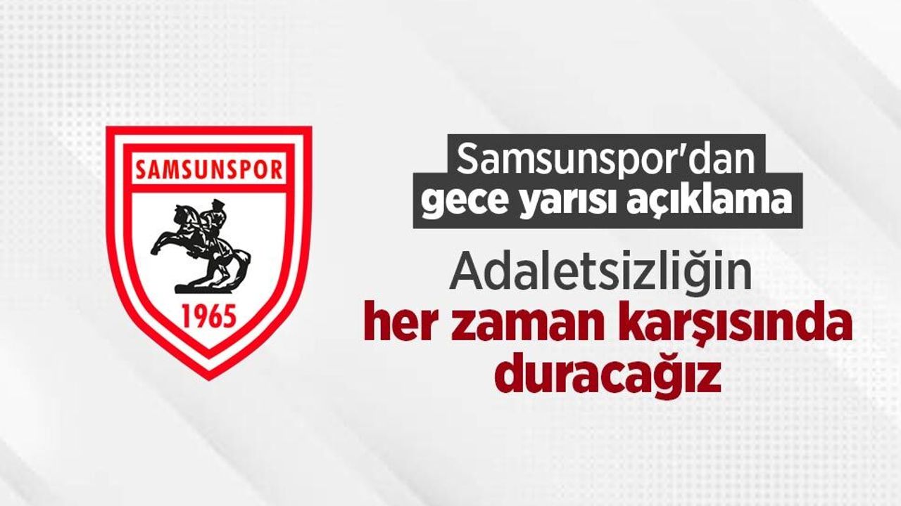 - Samsunspor olarak hakem hatalarının oyunun önüne geçtiği bir futbol iklimini asla kabul etmiyoruz. Sezon boyunca aleyhimize tekrarlanan bu tür fahiş hataların son bulması en büyük beklentimizdir. Başta Merkez Hakem Kurulu olmak üzere TFF’nin tüm ilgili kurumlarını, kalan haftalarda çok daha dikkatli, hassas ve tarafsız davranmaya davet ediyoruz.