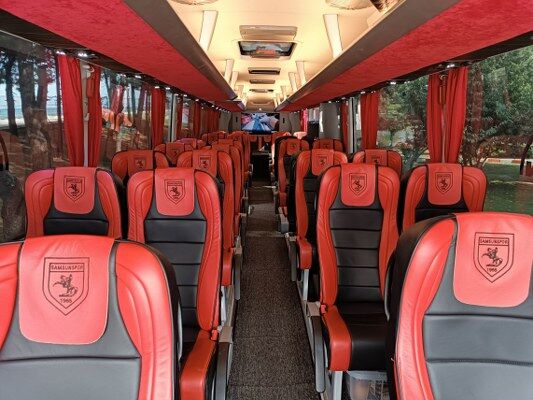 İspanya'nın Barcelona ve Almanya'nın Bayern Münih gibi dünyanın en önde gelen takımlarının da kullandığı otobüs; iç dizaynı olarak da bu takımların kullandığı donanıma sahip. Aynı koltuk sayısı ve yerleşiminin baz alındığı otobüste, seyahat bir business class uçak yolculuğu konforunda gerçekleştirilebiliyor. Ayrıca otobüsün şoförlüğünü de 26 yıldır takım otobüsünü kullanan Recep Terzi üstleniyor. Terzi ayrıca Türkiye profesyonel liglerinin en uzun süre takım otobüsü şoförlüğü yapan personellerin de başında geliyor.