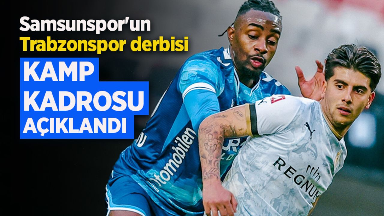 Samsunspor'un Trendyol Süper Lig 21. haftasında Cumartesi akşamı Trabzonspor ile karşılaşacağı derbinin kamp kadrosu açıklandı. Kırmızı beyazlı kulüpten yapılan paylaşıma göre sakatlıkları bulunan Bedirhan Çetin, Ali Diabate, Afonso Sousa, Emre Kılınç ve Tanguy Coulibaly kamp kadrosunda yer almadı. Teknik direktör Thomas Reis'in maç tahtasına yazdığı isimler arasında şu futbolcular yer alıyor;