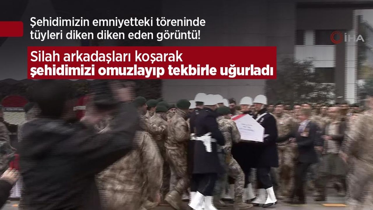 Albayrak’ın naaşı cenaze aracına götürülürken silah arkadaşlarının koşarak tabutu omuzlaması ve hep bir ağızdan tekbir getirmesi, törende duygu dolu anların yaşanmasına neden oldu. O anlar kameralara saniye saniye yansıdı ve izleyenlerin tüylerini diken diken etti.