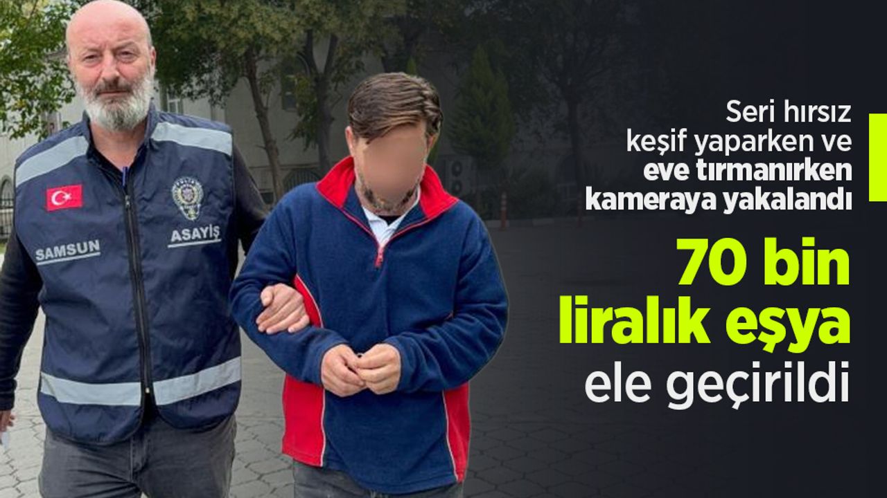 Samsun Emniyet Müdürlüğü Asayiş Şube Müdürlüğü Hırsızlık Büro Amirliği ekiplerince yakalanan A.K.'nin 13.09.2025'te bir ikametten 30 bin lira değerinde cep telefonu ve altın küpe çalınması ve 26.09.2025'te bir ikametten 40 bin lira değerinde televizyon ve laptop çalınması olayına karıştığı, 15.09.2025'te bir eve balkondan girilerek ev sahibi tarafından fark edilince kaçılması, 30.09.2025'te yine balkondan girilen bir ikamette ev sahibinin görmesi üzerine kaçtığı tespit edildi.