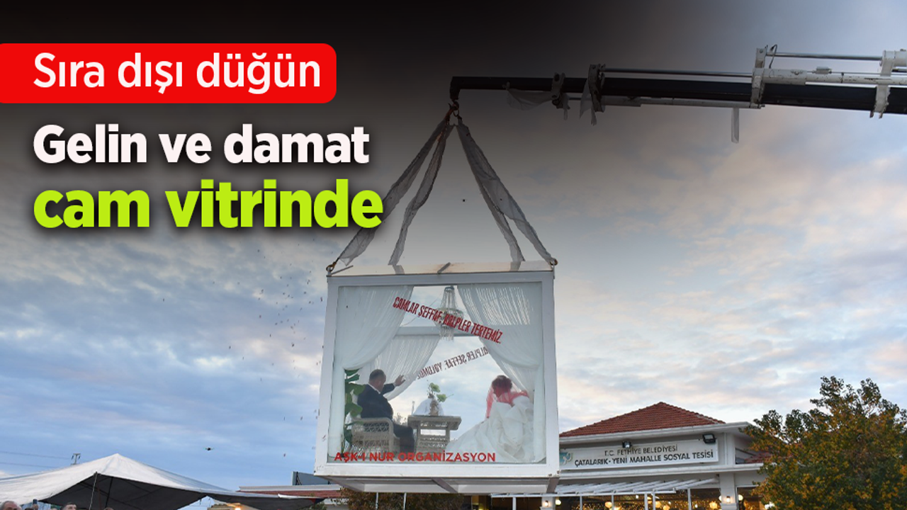 Fethiye ve Seydikemer ilçelerinin siyaset, esnaf ve ticaret dünyasından yoğun katılımın olduğu düğün töreninde gelin almaya özel yaptırılıp tıra yüklenen cam vitrin ile gidildi. Cam vitrin kız evinde vinçle tırdan indirilirken, gelin Merve Sarıman ve damat Berat Çetinkaya dualarla cam vitrine girdi. Cam vitrin vinçle tekrar tıra alkışlar arasında yüklendi. Gelini alan damat tarafları konvoy eşliğinde Seydikemer ilçesinden Fethiye'ye hareket etti. Tırda gelin ve damadı cam vitrinde görenler bu anı cep telefonlarıyla görüntülemeye çalıştı. Tır üzerinde cam vitrin içinde Çatalarık Mahallesi sosyal tesislerine çift geldiğinde çok sayıda davetli alkış tuttu. Cam vitrin içindeki çift burada da vinç yardımıyla tırdan yine alkışlar arasında indirildi.