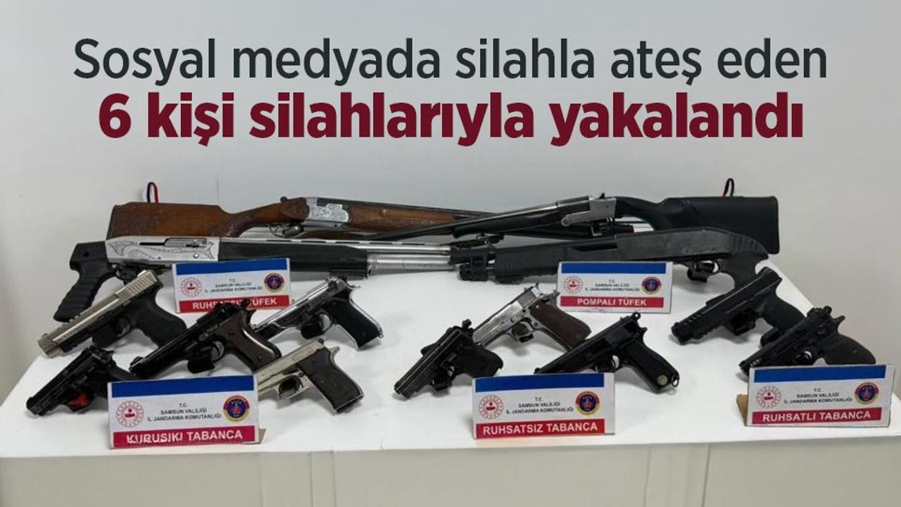 Edinilen bilgiye göre, Samsun İl Jandarma Komutanlığı ekipleri tarafından, 6 şahsın sosyal medyada yaptıkları paylaşımda silahla havaya ateş ederek genel güvenliği tehlikeye attığı tespit edildi. Jandarma ekipleri tarafından şahısların ikametlerinde yapılan aramalarda 5 adet kuru sıkı tabanca, 3 adet ruhsatsız tabanca, 2 adet ruhsatlı tabanca, 1 adet ruhsatlı tüfek ve 3 adet ruhsatsız tüfek ele geçirildi.