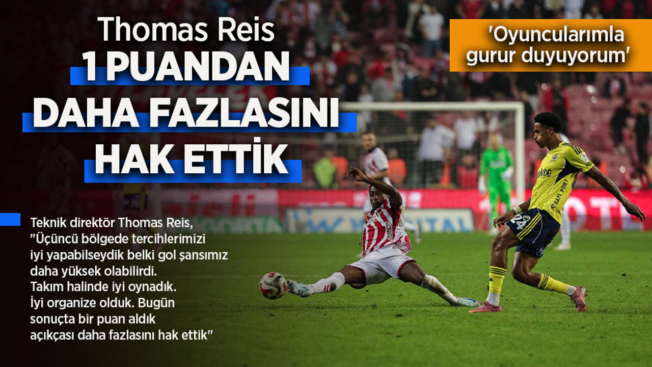 Samsunspor teknik direktörü Thomas Reis, yorgunluklarına rağmen sahada canla başla mücadele eden oyuncularını kutlayarak sözlerine başladı. Alman futbol adamı Fenerbahçe maçıyla ilgili şunları söyledi; Gösterdiğimiz performans nedeniyle takımımla gurur duyuyorum. Fenerbahçe karşısında ilk 15 dakikada istediklerimizi yapamadık. Sonrasında istediklerimizi sahaya yansıttık. Galibiyeti hak ettik diyebilirim.