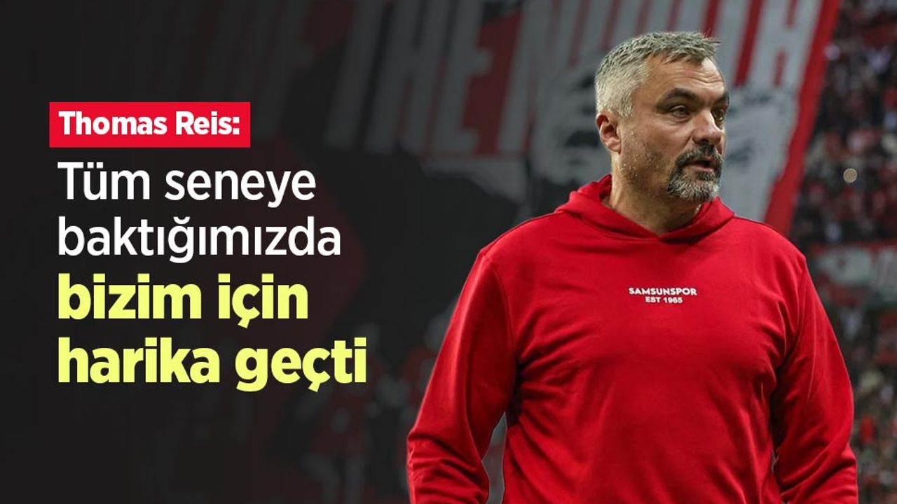 Samsunspor Teknik Direktörü Thomas Reis; yıl boyunca Süper Lig, Konferans Ligi ve Ziraat Türkiye Kupası’nda ortaya konulan performanstan dolayı takımıyla gurur duyduğunu söyledi. Takım olarak sezonun ilk yarısında alınan sonuçlardan da memnun olduğunu belirten Thomas Reis, “İlk yarıda ortaya konan takım performansını çok üst düzey olarak değerlendirebilirim. Takım olarak ve kulüp olarak bizim için son derece kıymetli bir deneyim yaşandı. Samsunspor, uzun bir aranın ardından ilk kez Avrupa arenasında grup aşamasında mücadele etti. Grup süreci ne yazık ki beklentiler açısından bir hayal kırıklığı oluşturdu. Çünkü ilk 8’e kalmak adına önemli bir avantajımız vardı. Ancak bu fırsatı AEK Atina ya da Mainz 05 karşılaşmalarında değil, Breidablik deplasmanında kaybettiğimizi düşünüyorum. O maçta çok sayıda pozisyon ürettik fakat değerlendiremedik” diye konuştu.