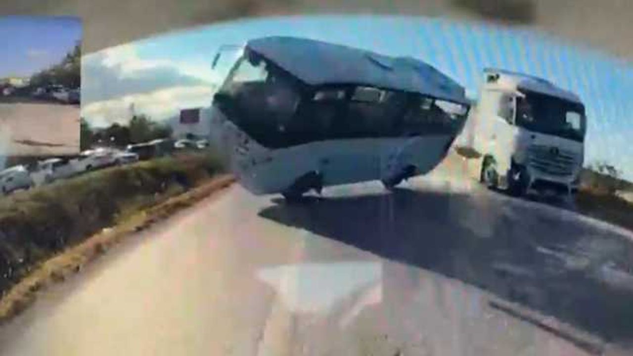 Kazada servis minibüsünün boş olması facianın önüne geçerken, feci kaza ise bir aracın arka kamerası tarafından anbean kaydedildi. Görüntülerde çarpma sonrası minibüsün havada uçtuktan sonra menfeze çarpması ve takla atması kameralara yansıdı.