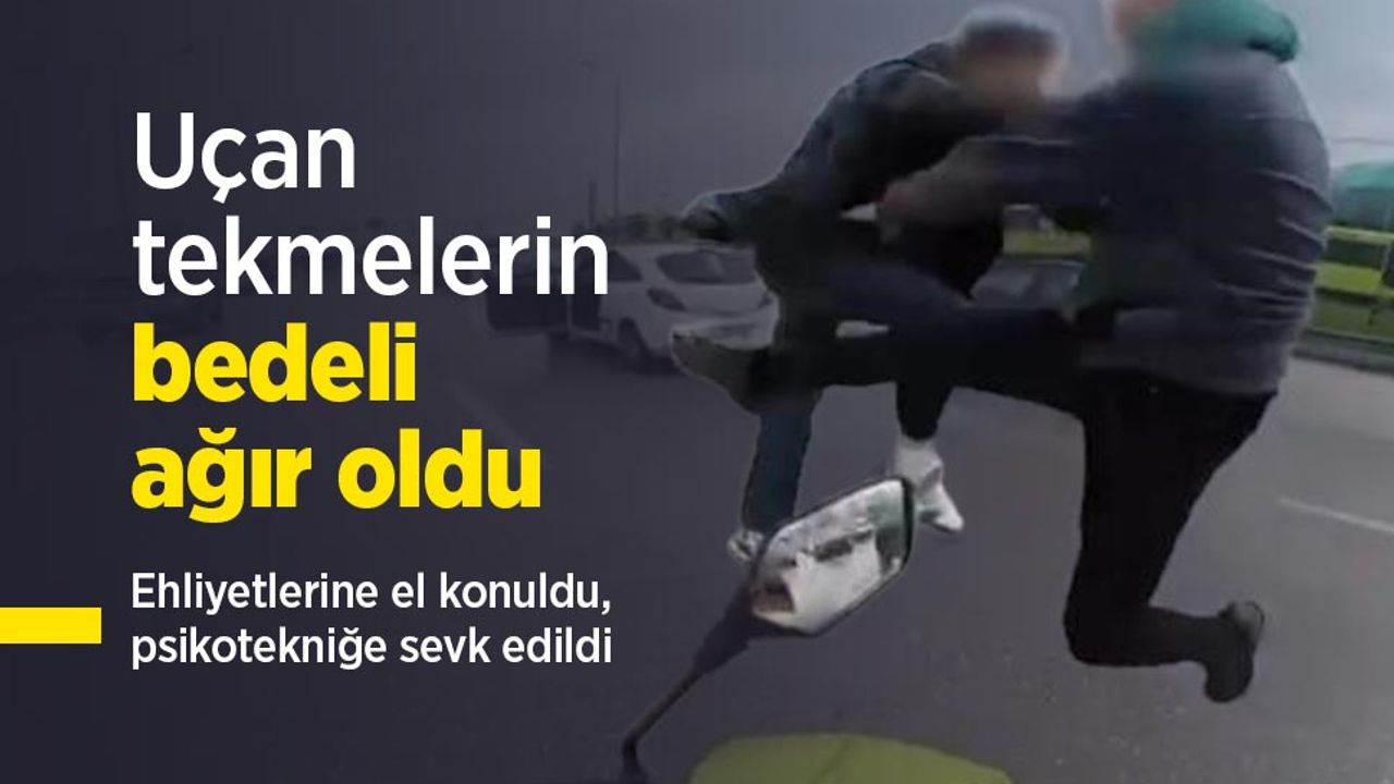 Görüntüler üzerine harekete geçen Bursa İl Emniyet Müdürlüğü ekipleri, kavga eden sürücülerin Serkan K. ile Emirhan A. olduğunu tespit etti. İki sürücü gözaltına alındı. Polis ekiplerince sürücülere toplamda 13 bin lira idari ceza uygulandı.