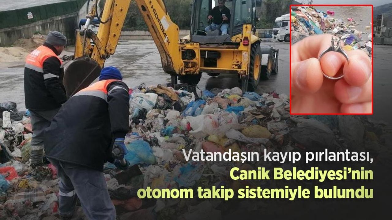 Canik Belediyesi Temizlik İşleri Müdürlüğü ekipleri, ilçede gerçekleştirdiği temizlik çalışmaları esnasında bulduğu kayıp ziynet eşyasını sahibine ulaştırdı. Canik Belediyesi Katı Atık Aktarma İstasyonu'nda çöp kamyonu boşaltım işlemi gerçekleştiren ekipler, işlemler sırasında beyaz bir çanta içerisinde pırlanta yüzük olduğunu fark etti.