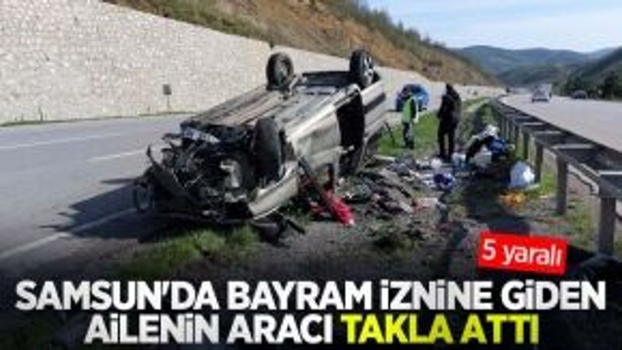 İstanbul'dan memleketleri Ordu'ya bayram iznine giden ailenin içinde bulunduğu otomobilin Samsun'da yoldan çıkarak takla attığı kazada aynı aileden 5 kişi yaralandı.