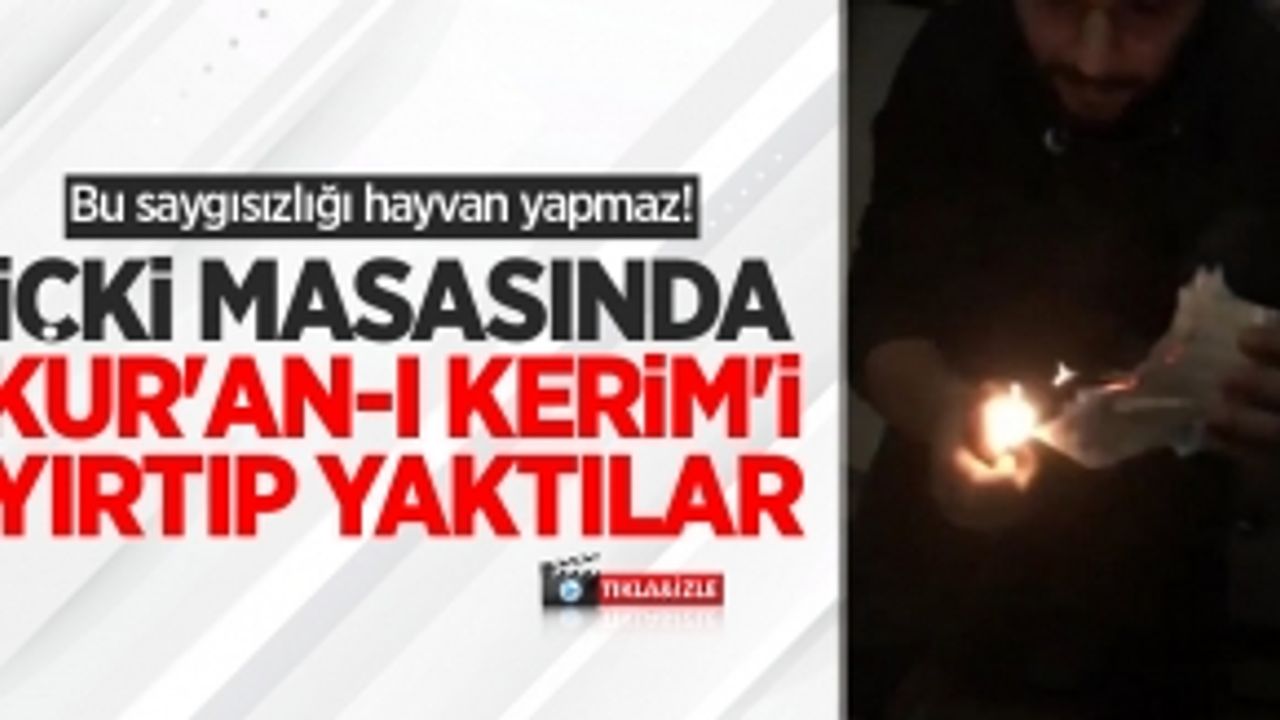 Bu saygısızlığı hayvan yapmaz! İçki masasında Kur'an-ı Kerim'i yırtıp yaktılar
