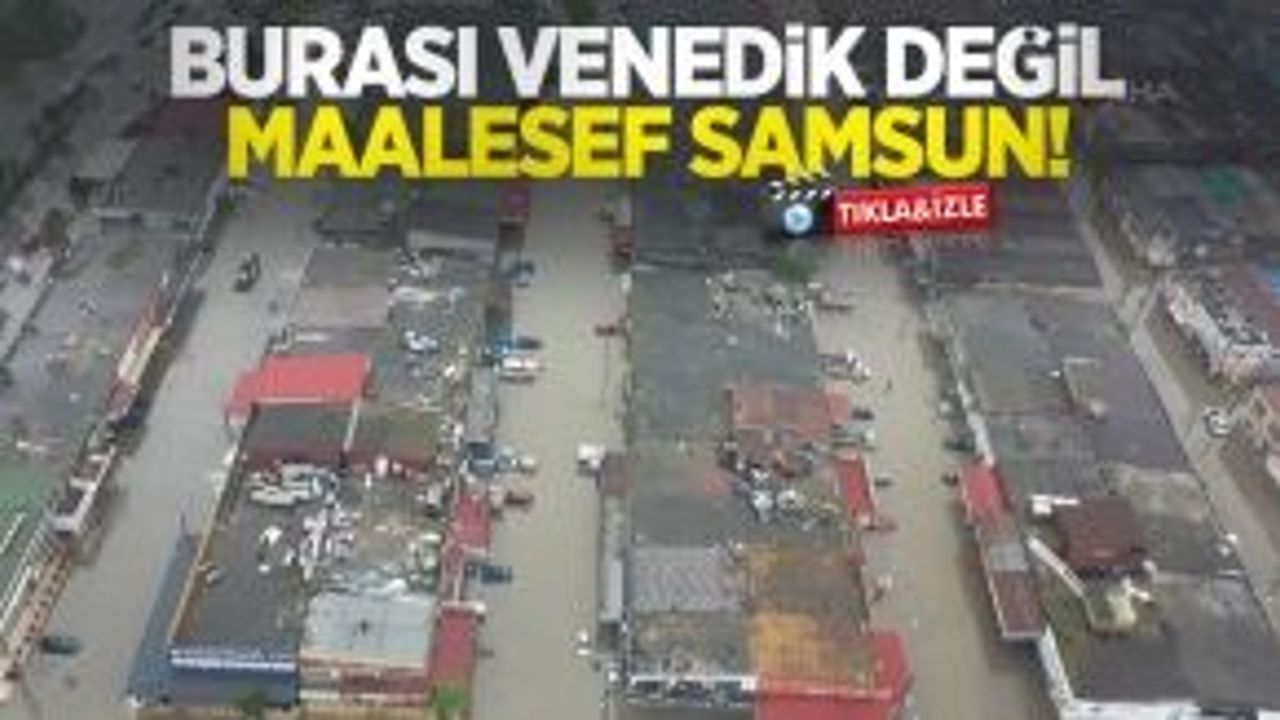 Metrekareye 53 kilo yağışın düştüğü Samsun’da sular altında kalan sanayi siteleri havadan görüntülendi.