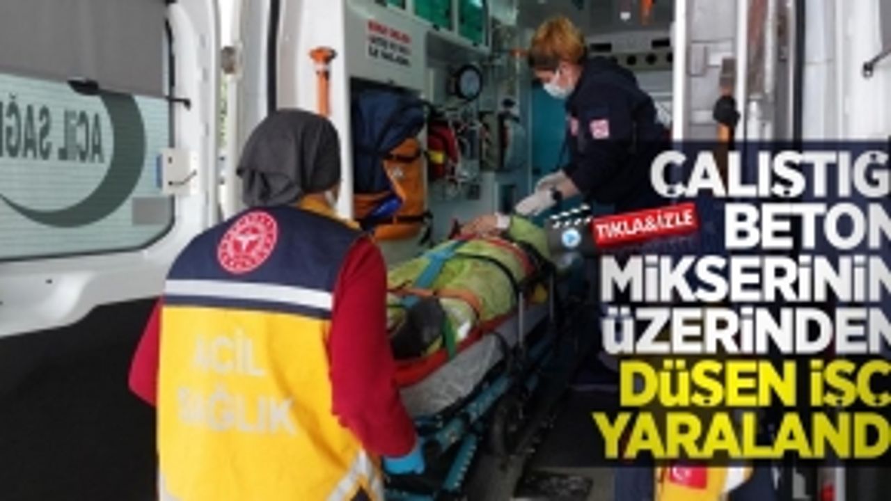 Çalıştığı beton mikserinin üzerinden düşen işçi yaralandı
