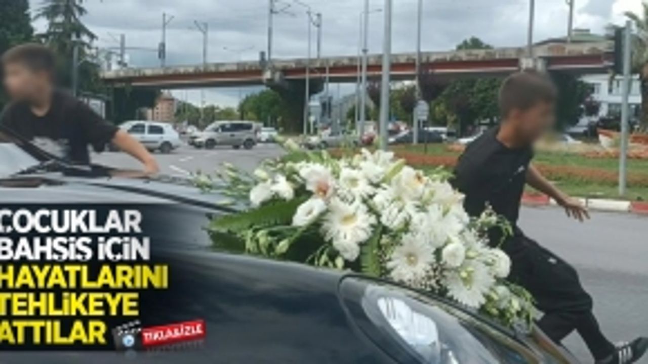 Samsun'da damattan bahşiş almak için gelin arabasının önünü kesen çocuklar, canlarını tehlikeye atmalarına rağmen bahşiş alamadılar. Kaputa yapışan çocuklardan biri, lüks gelin aracının altında kalmaktan son anda kurtuldu.