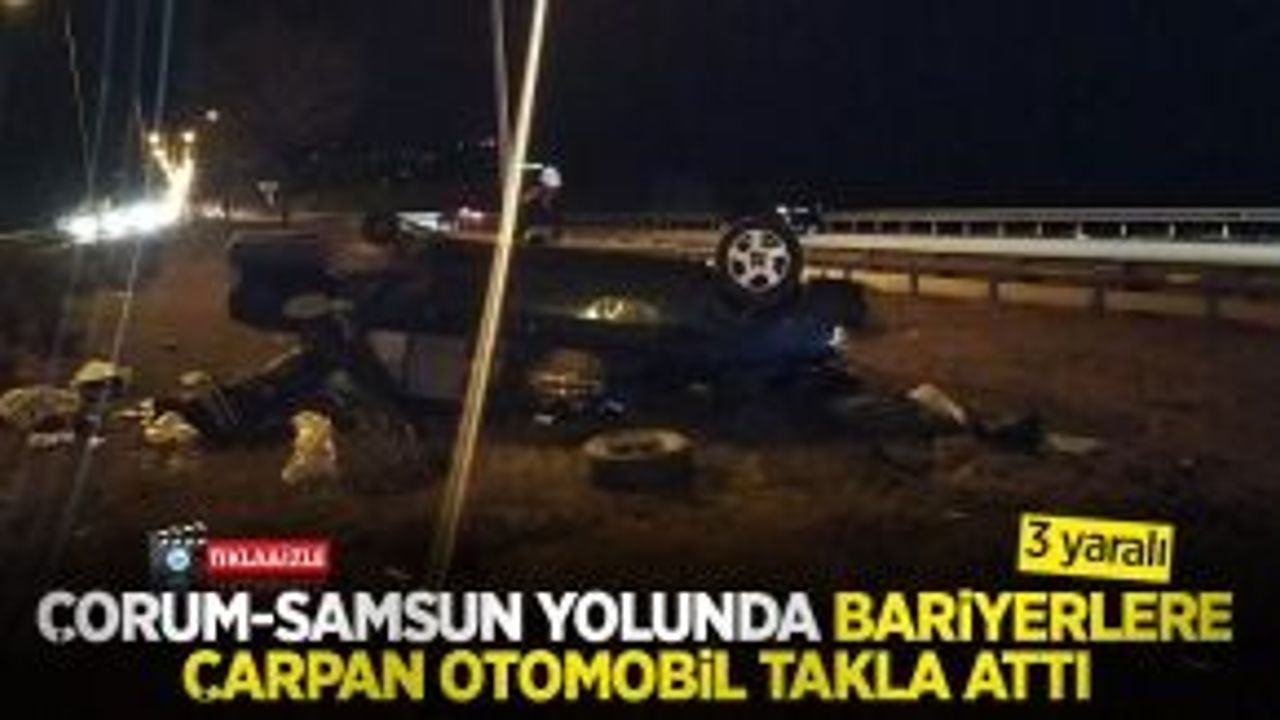 Çorum-Samsun yolunda kontrolden çıkan otomobil bariyerlere çarparak takla attı. Kaza sonucunda 3 kişi yaralandı.
