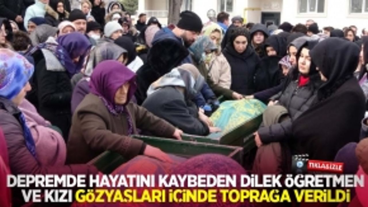 Depremde hayatını kaybeden Dilek öğretmen ve kızı gözyaşları içinde toprağa verildi