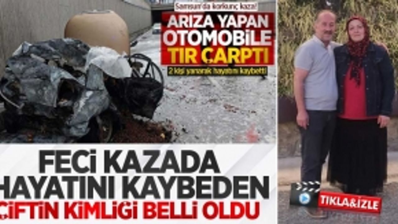 Samsun'da arıza yapan otomobile köprülü kavşak altında tırın çarpması sonucu meydana gelen kazada yanan otomobilde bulunan 2 kişinin kimlikleri tespit edildi. Kazada hayatını kaybeden karı-kocanın Ordu'da katıldıkları düğünden İstanbul'a gitmek...
