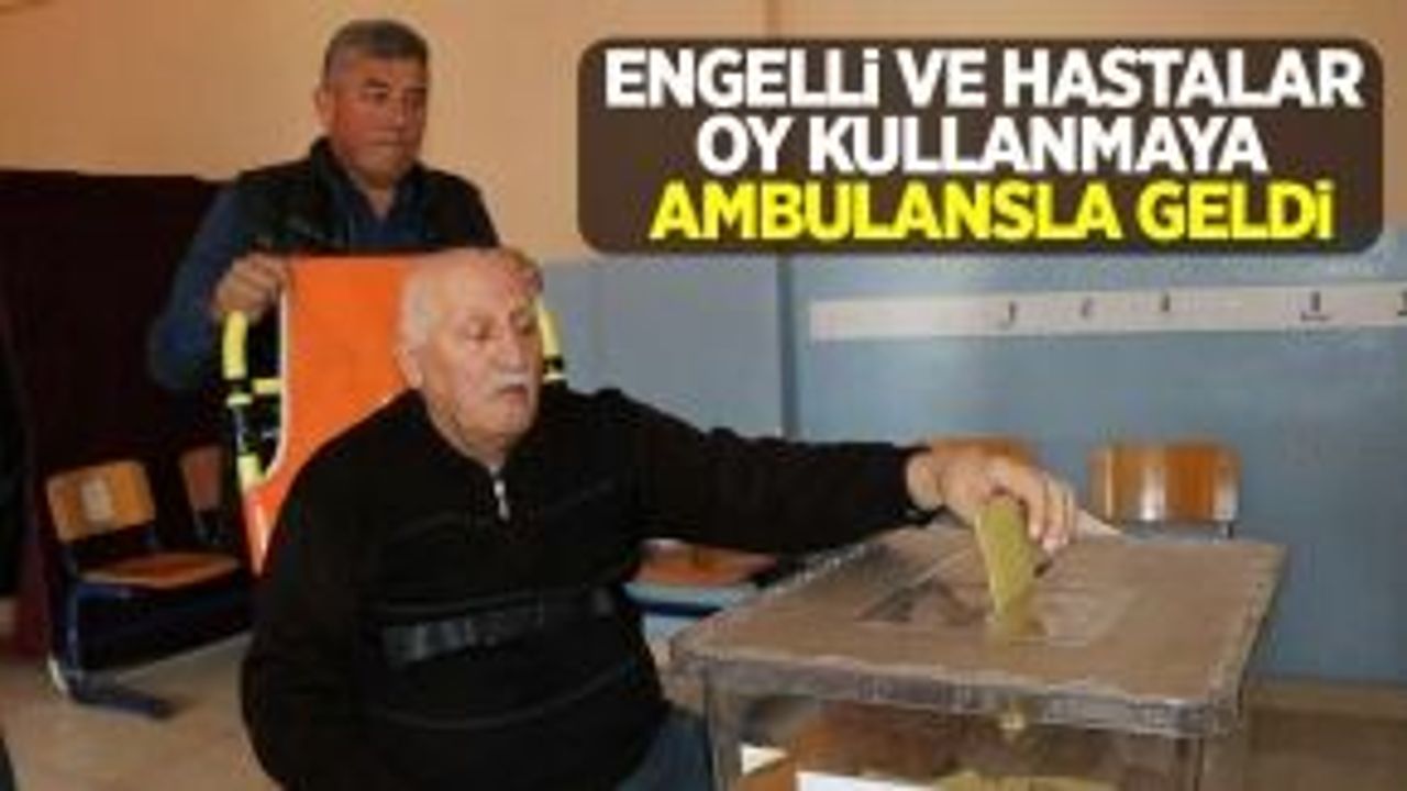 Engelli ve hastalar oy kullanmaya ambulansla geldi