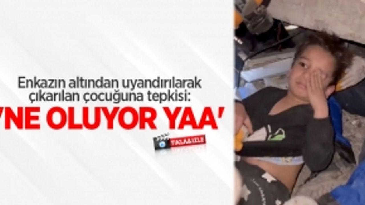 Enkaz altında mahsur kalan küçük depremzede, kurtarma ekibini görünce şaşkınlığını gizleyemedi. Enkazdan kurtarılan küçüğün, 'Ne oluyor yaa' tepkisi tebessüm ettirdi.