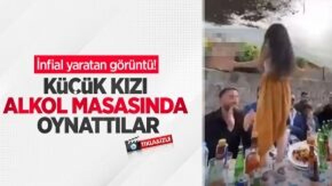 ...İnfial yaratan görüntü! Küçük kızı alkol masasında oynattılar