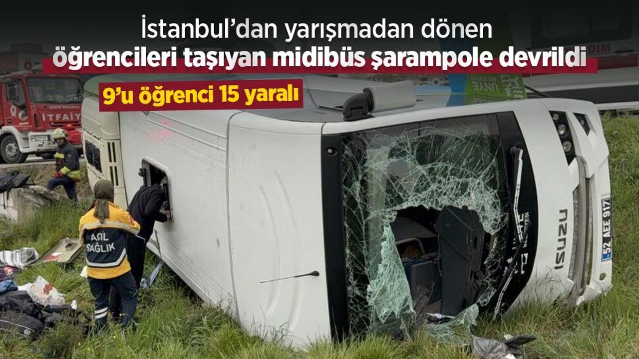 İstanbul’dan yarışmadan dönen öğrencileri taşıyan midibüs şarampole devrildi: 9’u öğrenci 15 yaralı