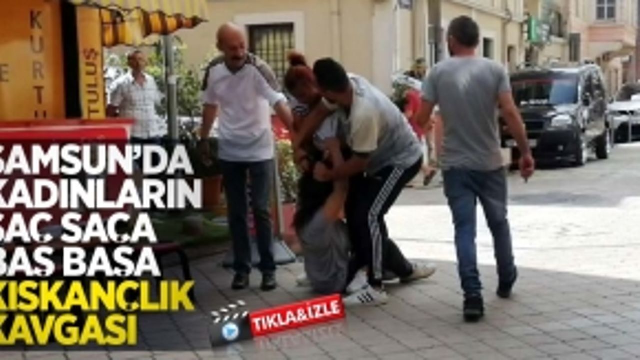 Samsun’da 2 kadın sokak ortasında kıskançlık meselesi yüzünden saç saça baş başa kavga etti.