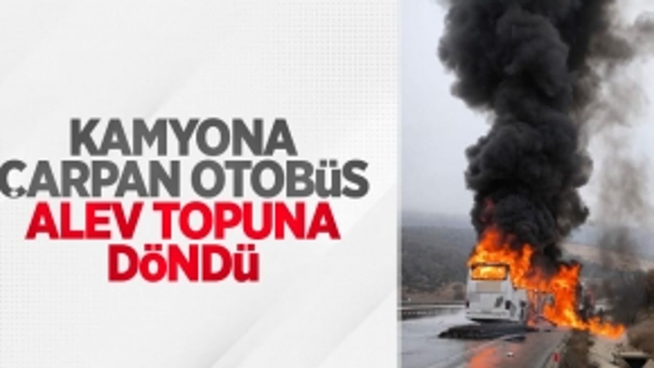 Samsun'a gitmekte olan yolcu otobüsü kamyona çarparak adeta alev topuna döndü. Feci kazada ilk belirlemelere göre, 2 kişi hayatını kaybederken, 5 kişi de yaralandı.