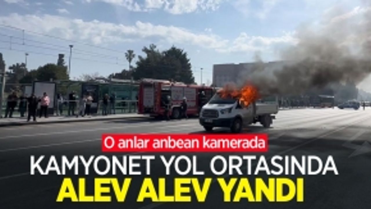 Kamyonet yol ortasında alev alev yandı: O anlar anbean kamerada