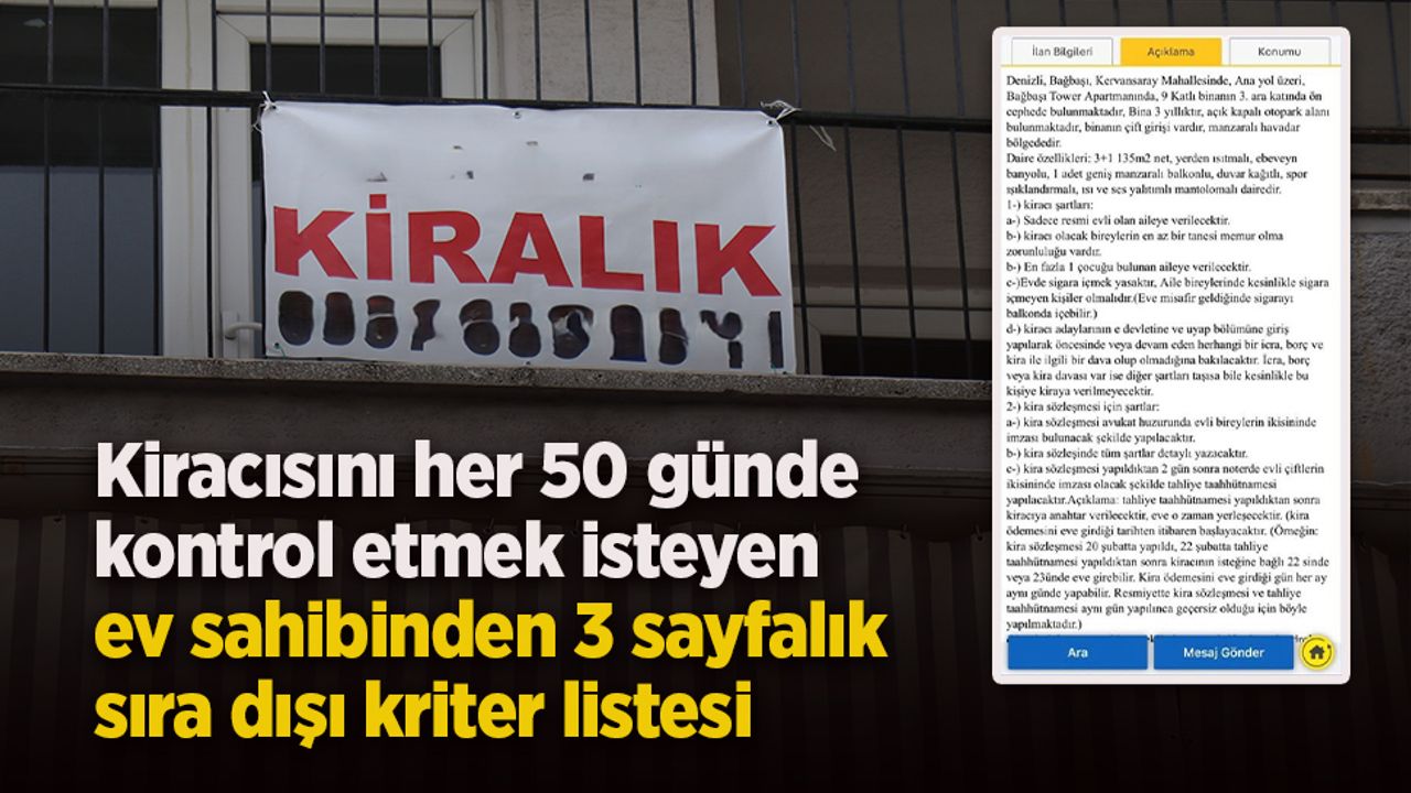 Kiracısını her 50 günde kontrol etmek isteyen ev sahibinden 3 sayfalık sıra dışı kriter listesi