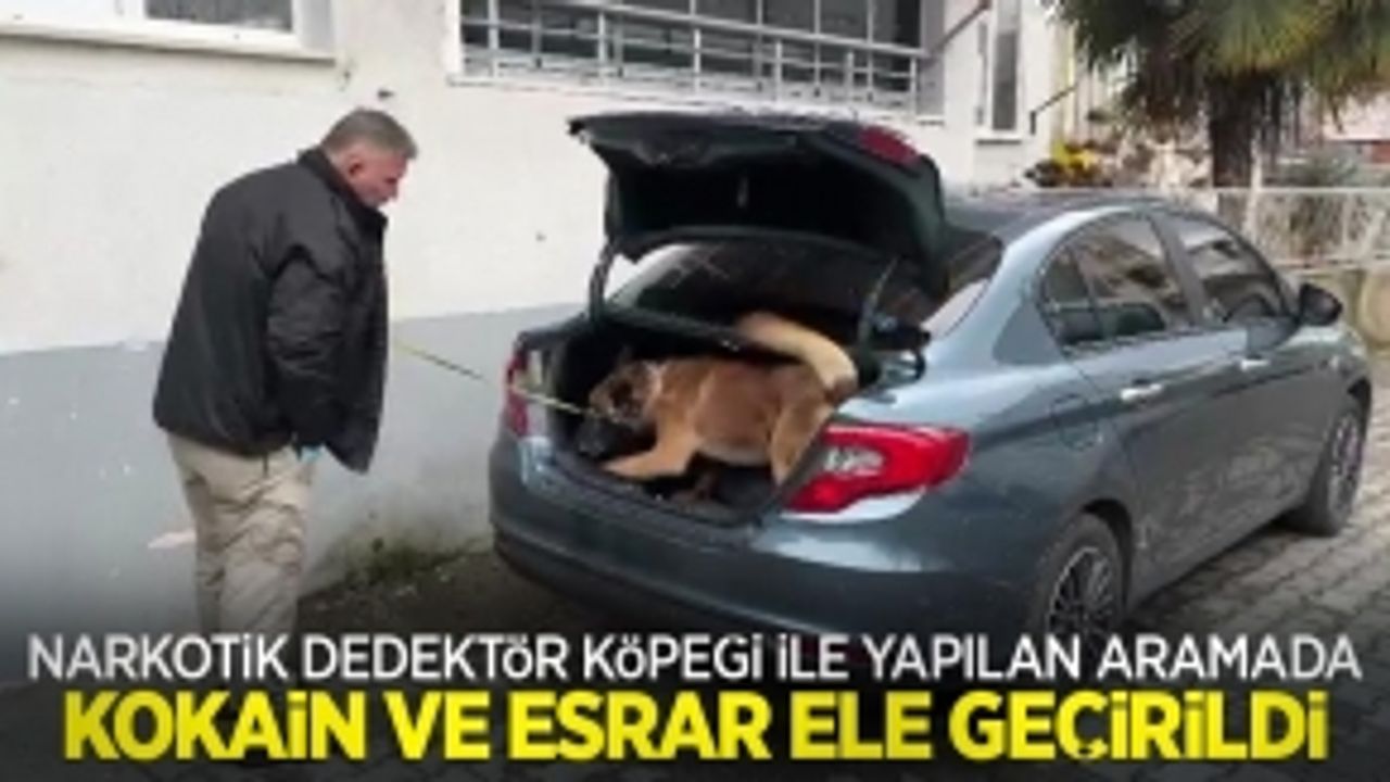 Narkotik dedektör köpeği ile yapılan aramada kokain ve esrar ele geçirildi