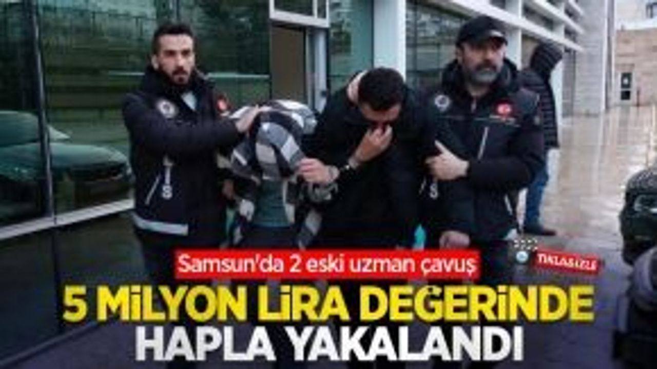 Samsun'da 2 eski uzman çavuş 5 milyon lira değerinde hapla yakalandı